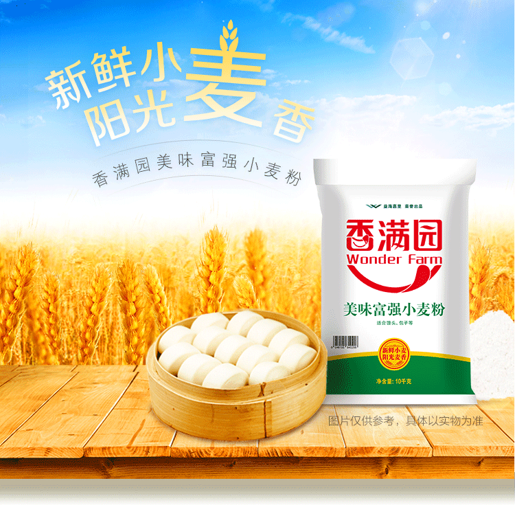 香满园 面粉 中筋粉 美味富强小麦粉 20斤 包子饺子馒头饼手擀面