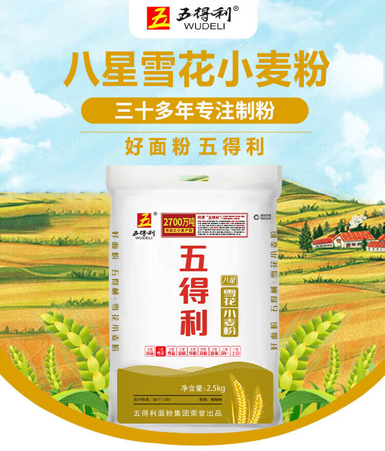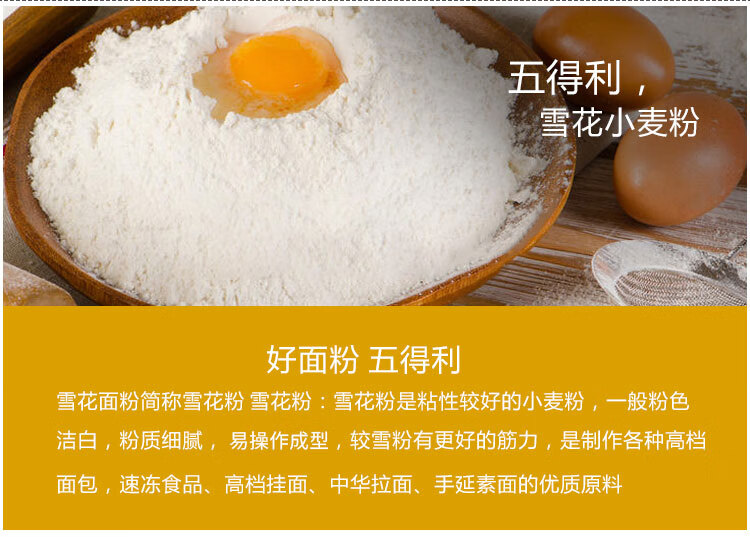 五得利面粉 八星雪花小麦粉包子面条水饺麦芯粉5斤